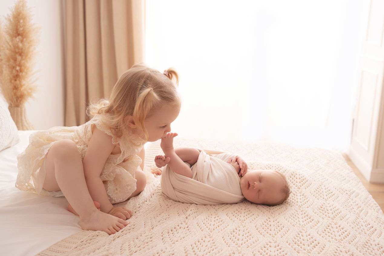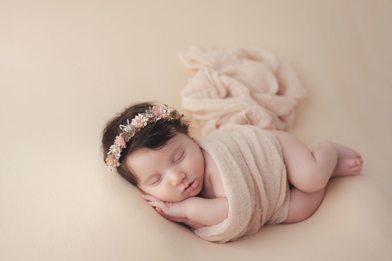 Zeitlose Studioaufnahmen mit liebevoll arrangierten Sets, sanften Farben und zarten Accessoires – perfekt, um die ersten Lebenstage stilvoll festzuhalten
